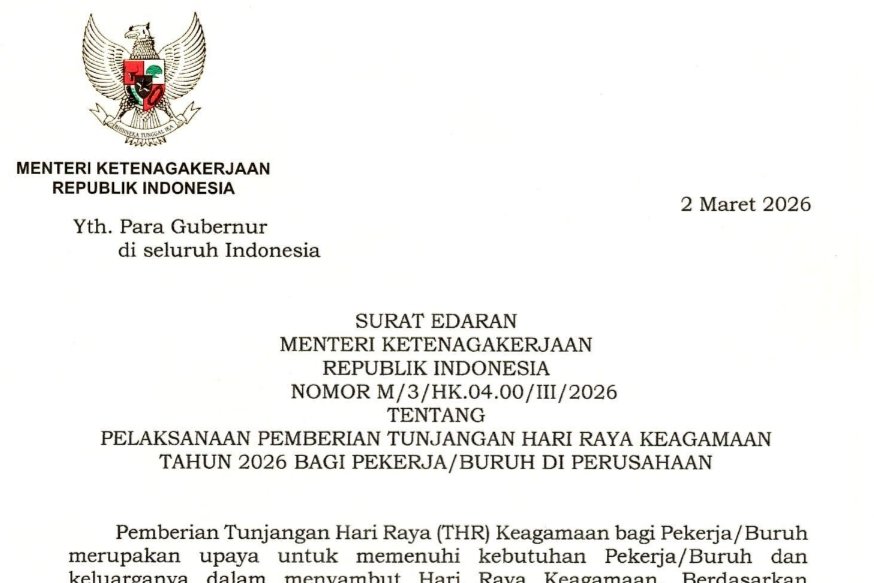 PEKANBARU - Menteri Ketenagakerjaan (Menaker) Yassierli menerbitkan Surat Edaran (SE) Nomor M/3/H.