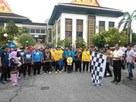 PEKANBARU - Senam dan Jalan Sehat Persatuan Wartawan Indonesia (PWI) Pokja Kota Pekanbaru Sampena.